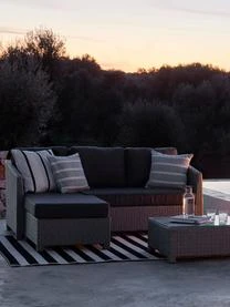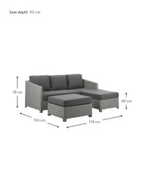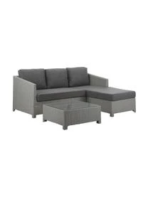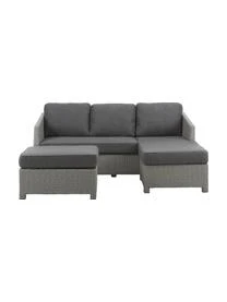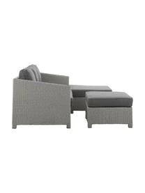 3-tlg. Garten-Lounge-Set, bestehend aus einem Sofa (3-Sitzer), einer Ottomane und einem Hocker, der auch als Couchtisch verwendet werden kann.