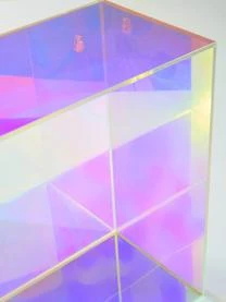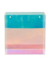 Wandregal aus Acryl, dass das Farbspektrum des Regenbogens reflektiert. Das Regal hat Löcher zur Wandbefestigung an der Rückseite.