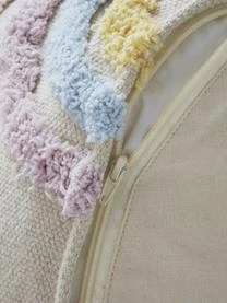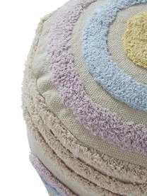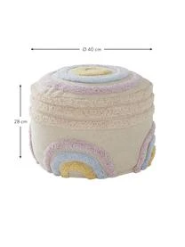 Bei diesem runden Pouf ist der Bezug aus einem kräftigen Gewebe mit getuftetem Ton-in-Ton-Muster. Das Innenkissen des bequemen Poufs ist weich mit Polystyrolkügelchen gefüllt, die sich beim Sitzen an den Körper anpassen. Dank des Reißverschlusses auf der Unterseite des Poufs lässt sich der Bezug abnehmen.