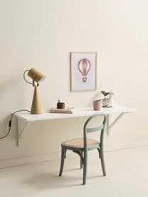 Das Produkt wird in der gewünschten Höhe an der Wand befestigt. Mit einem bequemen Stuhl davor ist rasch ein praktischer, unkomplizierter Platz für die Hausaufgaben oder das Homeoffice eingerichtet.